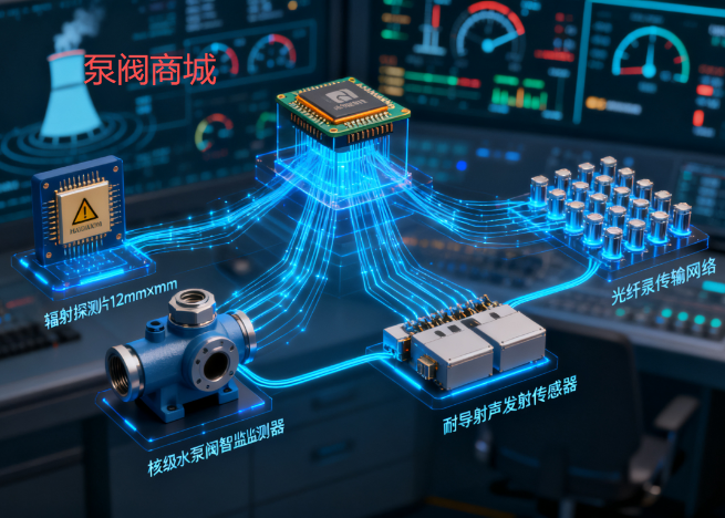 核級(jí)泵閥的智能監(jiān)測(cè)技術(shù)是本次核博會(huì)的另一大亮點(diǎn)。上海工開閥門聯(lián)合上海工開閥門展示的 "核級(jí)閥門智能監(jiān)測(cè)系統(tǒng)",集成了國(guó)產(chǎn)化輻射探測(cè)芯片與多參數(shù)傳感網(wǎng)絡(luò),實(shí)現(xiàn)了從傳統(tǒng)定期巡檢向?qū)崟r(shí)在線監(jiān)測(cè)的跨越。該系統(tǒng)的硬件核心是我國(guó)自主研發(fā)的 X/γ 核輻射劑量探測(cè)芯片,這款已量產(chǎn)的微型芯片尺寸僅 12mm×12mm,能在 - 20℃~50℃環(huán)境中精準(zhǔn)探測(cè)輻射劑量,響應(yīng)時(shí)間不到 10 秒,靈敏度達(dá)到國(guó)際同類產(chǎn)品的 10 倍以上。配合中物院研發(fā)的耐輻射聲發(fā)射傳感器,可實(shí)時(shí)捕捉閥門內(nèi)部的微小泄漏信號(hào),在福清核電 5 號(hào)機(jī)組的應(yīng)用中,成功提前 28 天預(yù)警了一起上充泵機(jī)械密封失效隱患。