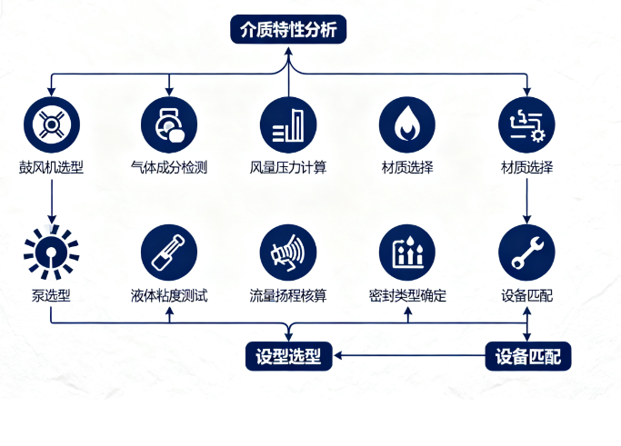 參數核算:利用專業選型軟件(如流體力學計算軟件、設備性能模擬軟件),精準核算所需風量、壓力(或流量、揚程),并考慮介質特性對設備性能的影響;