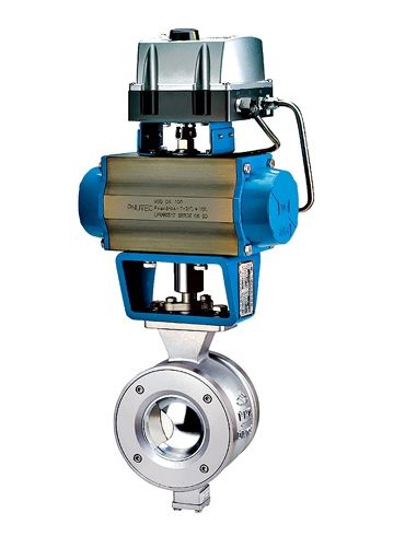 V型球閥屬于固定球閥,也是單閥座密封球閥,調(diào)節(jié)性能是球閥中最佳的,流量特性是等百分比的,可調(diào)比達100:1。它的V型切口與金屬閥座之間具有剪切作用,特別適合含纖維、微小固體顆粒、料漿等介質(zhì)。